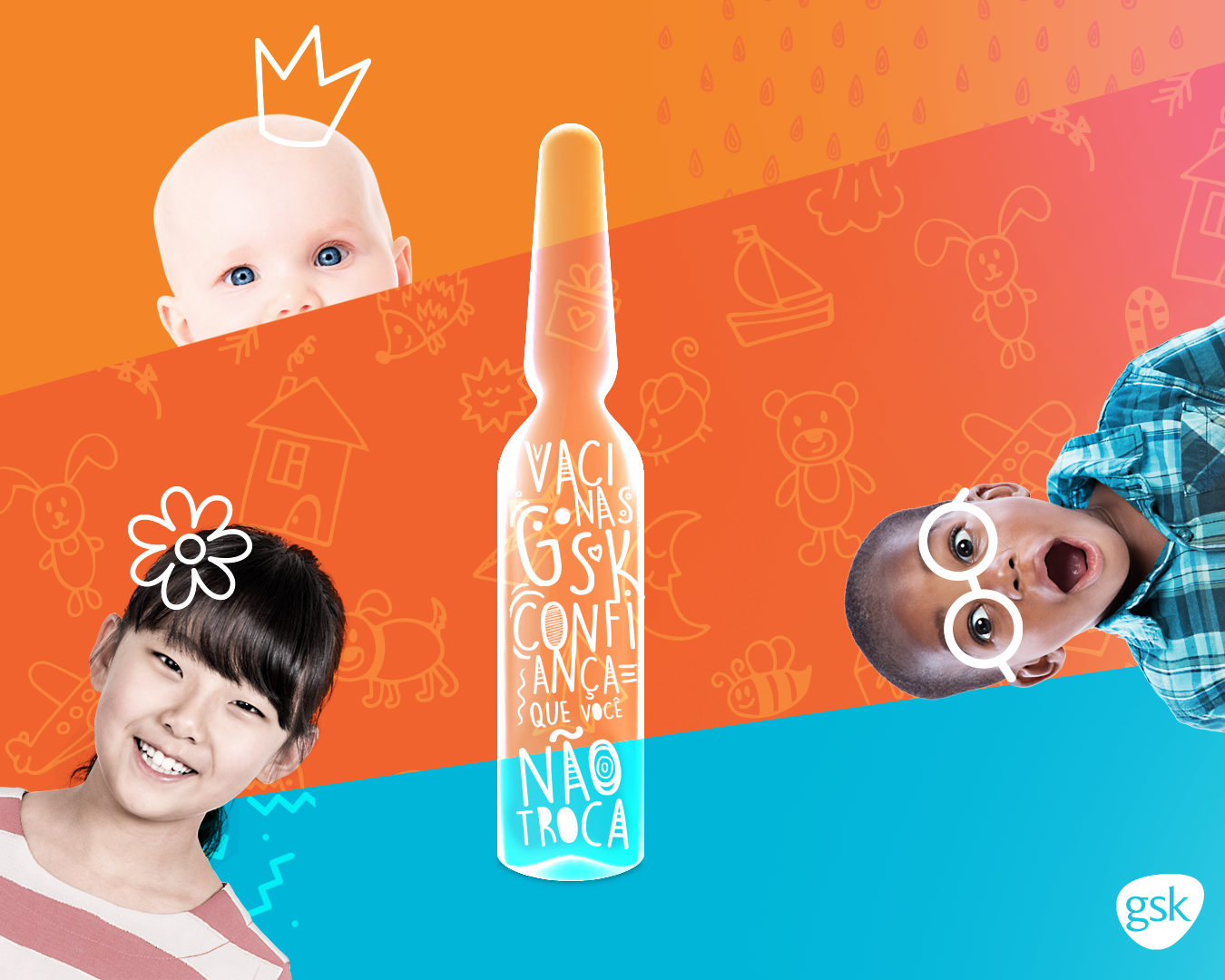 A colorful and full of life campaign focused on the trustworthy GSK vaccines for every age children.